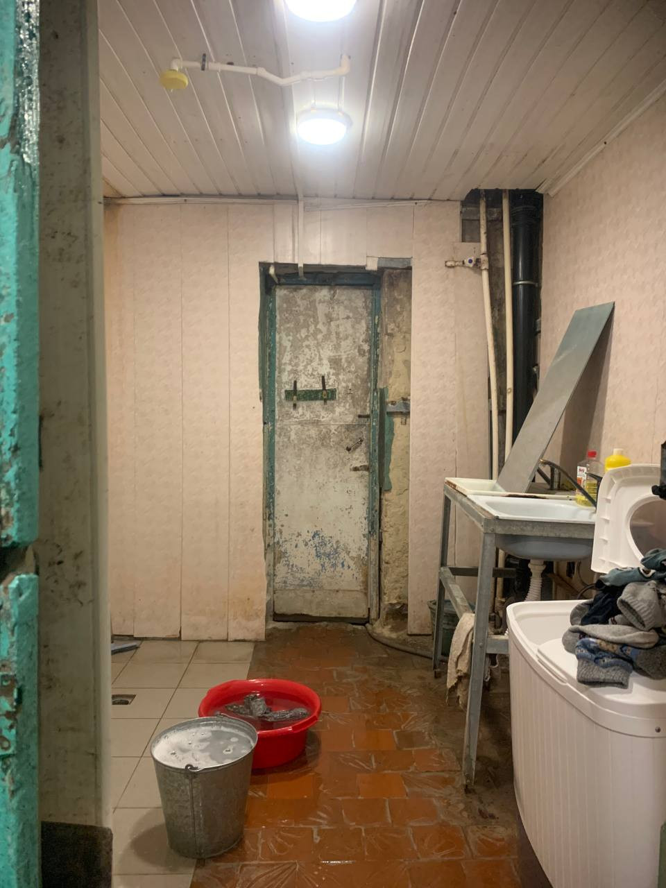 Туалет и ванна общие на 4 комнаты, недавно был сделан ремонт. Кухня-столовая оборудована плитой, 2 мойками и местом для готовки.
