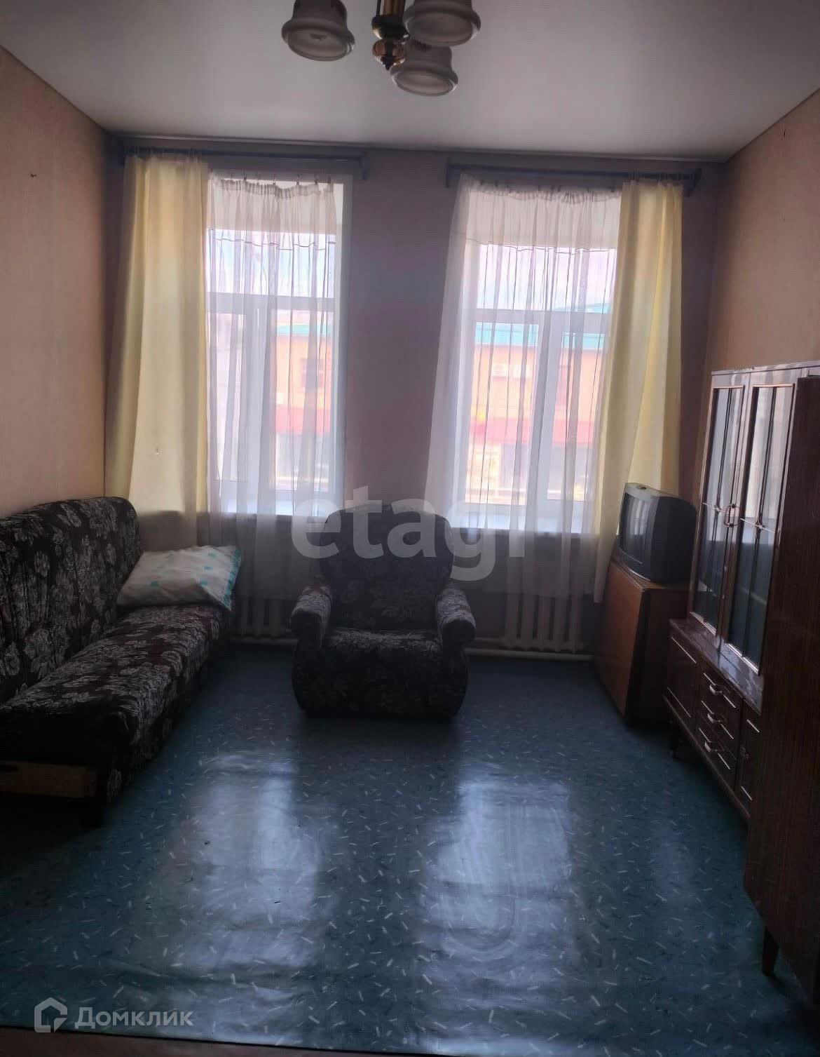 По ремонту: окна пластиковые, натяжной потолок, проведена вода в комнате можно подключить стиральную машину, мебель вся что есть останется, дверь хорошая деревянная.