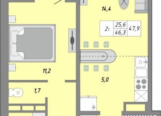 Общая площадь: 47 м2