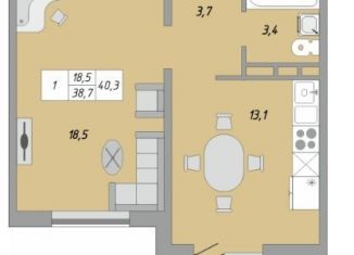 Продаю однокомнатную квартиру, 38.6 м2, улица Юркина, 8