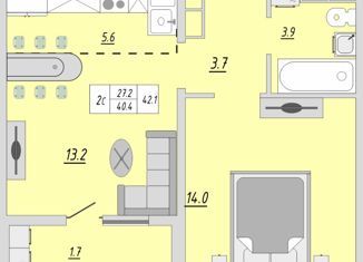 Общая площадь: 40.5 м2