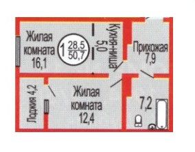 Общая площадь: 30.9 м2