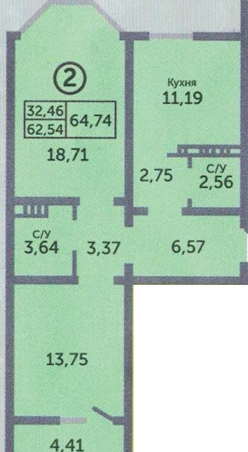 Общая площадь 65 м2