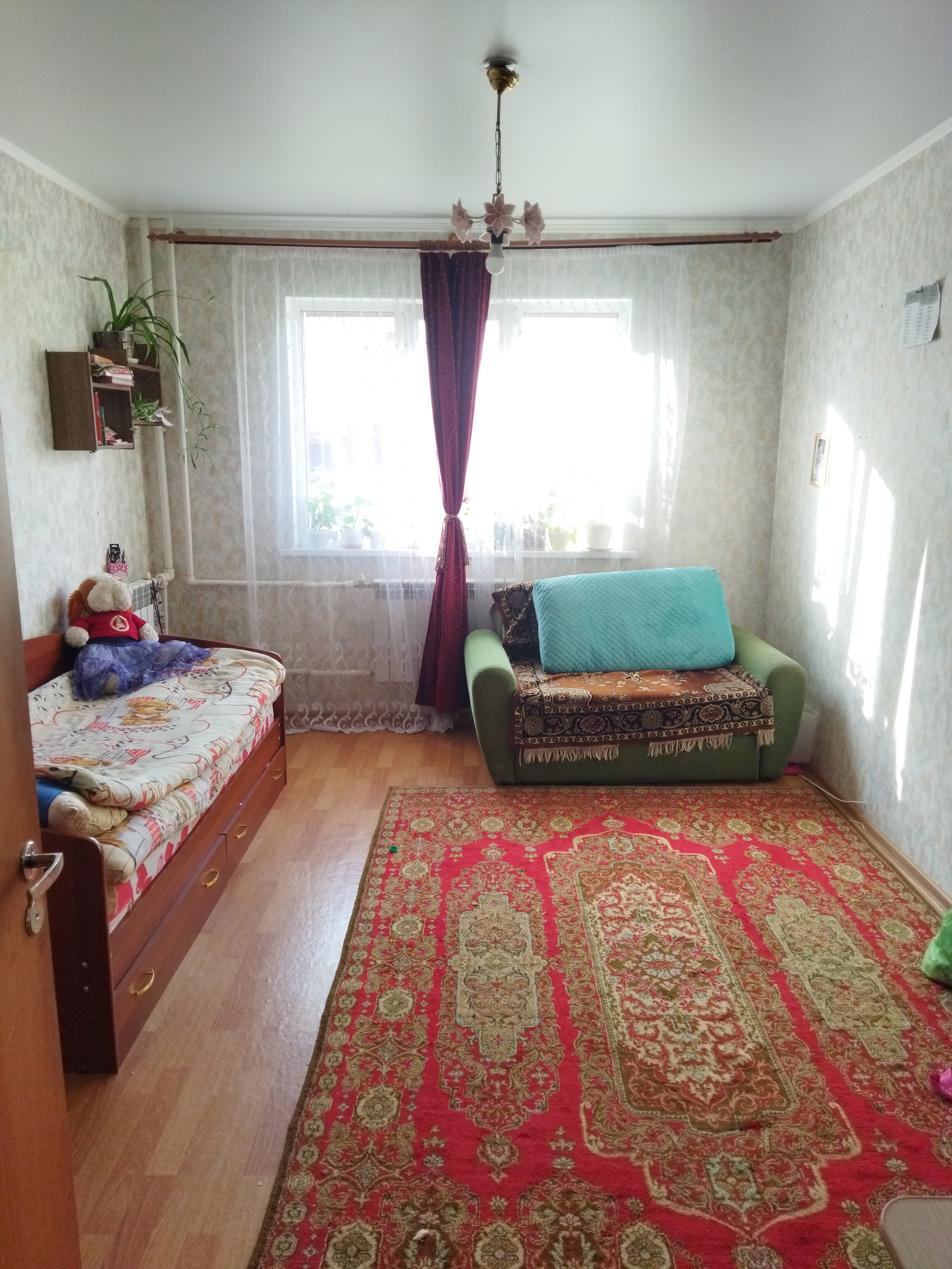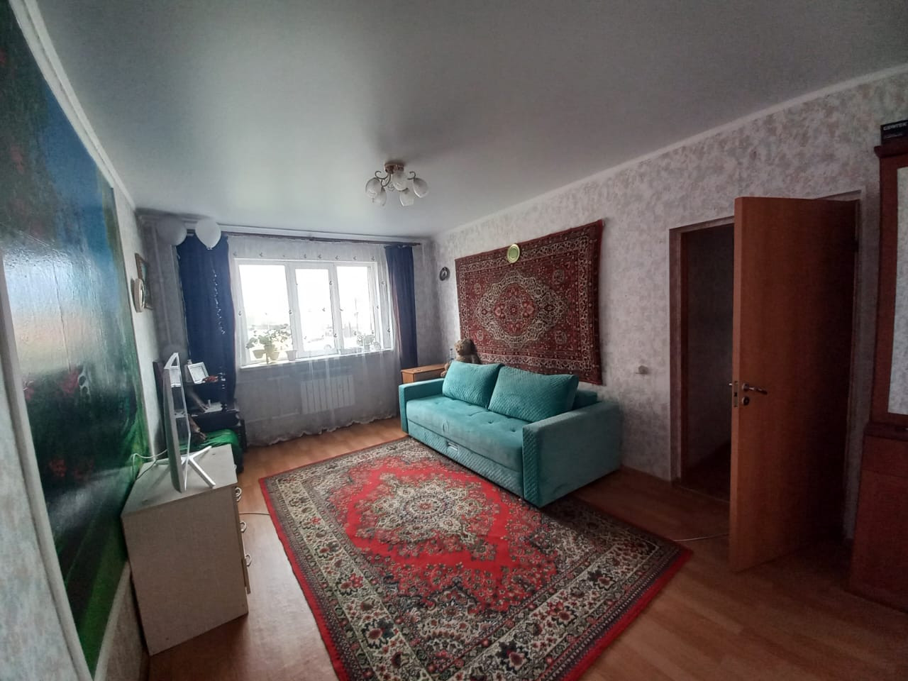 Во всех комнатах выполнен косметический ремонт: натяжные потолки, оклеены обои, на полу линолеум.