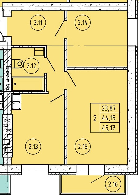 Общая площадь 45.2 м2