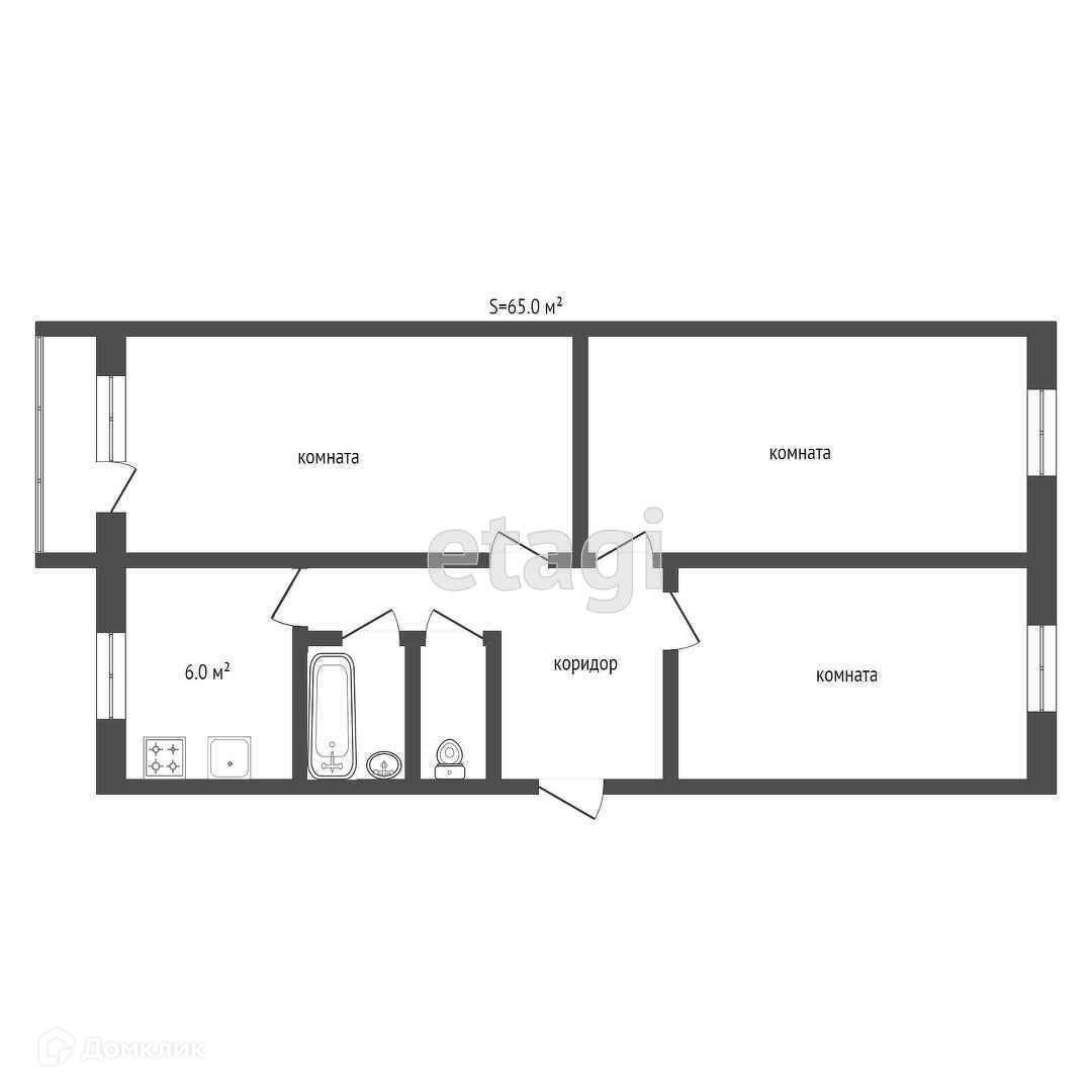 Общая площадь 61.2 м2