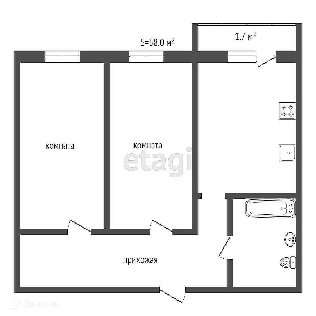Общая площадь 58 м2