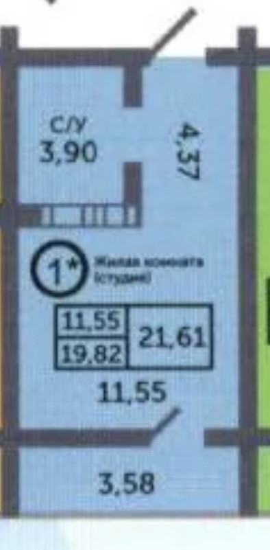 Общая площадь 21.6 м2