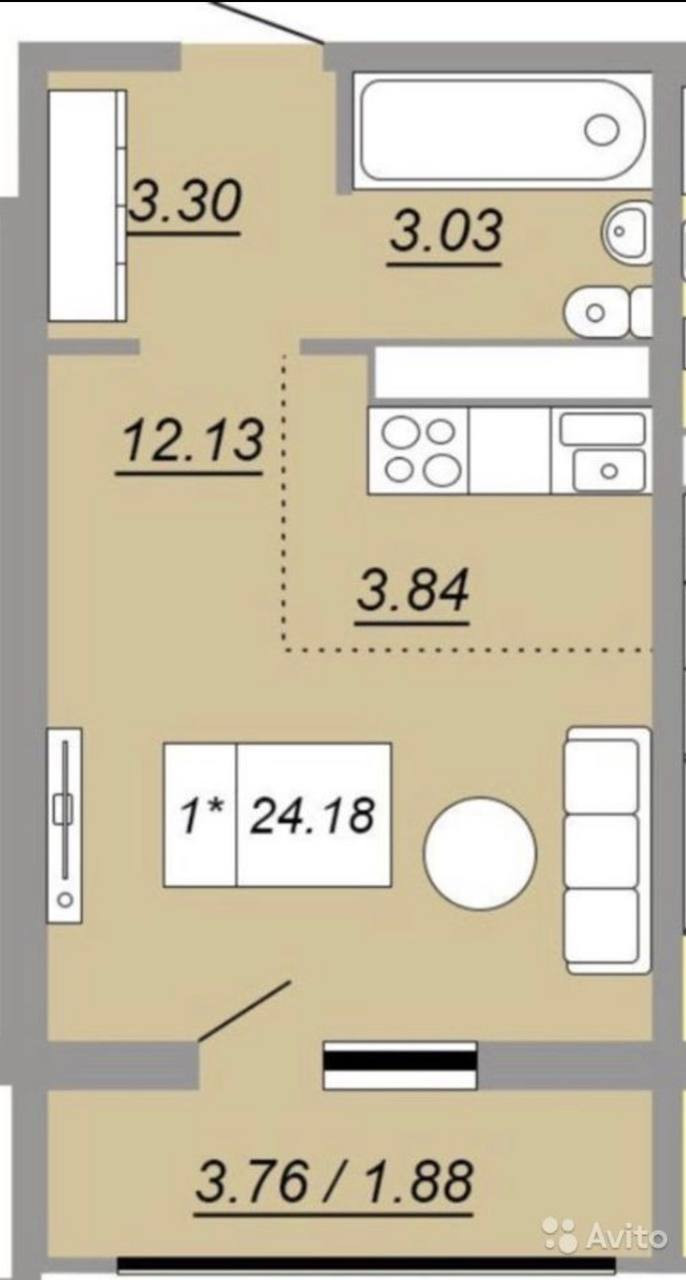 Продается квартира-студия в строящемся доме жилого комплекса "Осенний лист". Сдача дома в конце 2022 года!