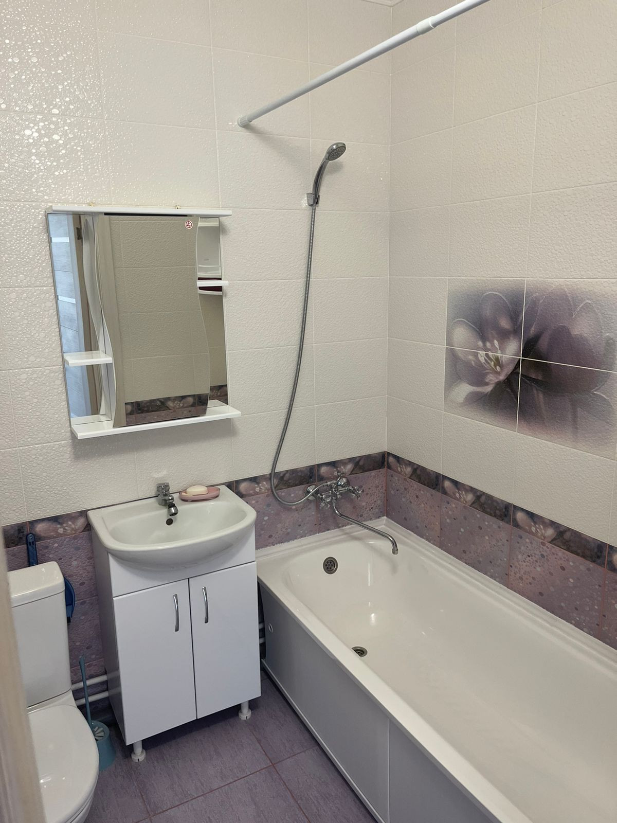 -санузел полностью в кафеле с сантехникой в светлых тонах