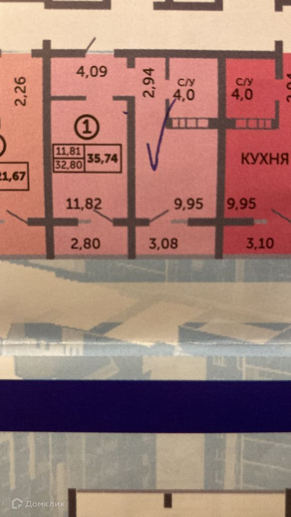 Общая площадь 35.74 м2
