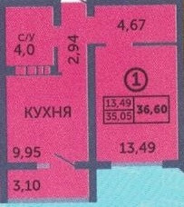 Общая площадь 37 м2
