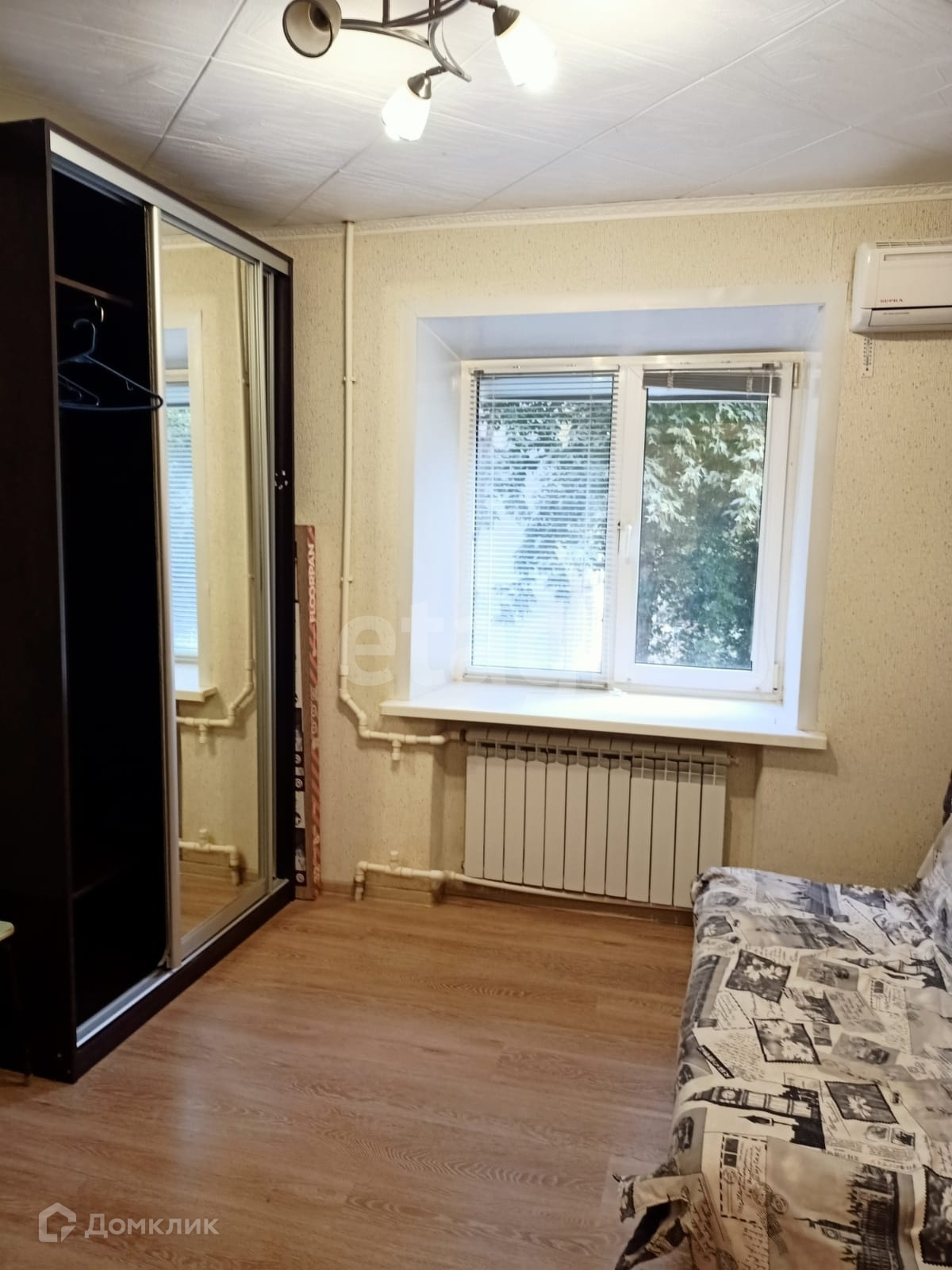 На кухне напольный и подвесной шкаф, мойка и варочная панель. Окно пластиковое. Установлен кондиционер. Душ отделан кафелем. В комнате вместительный шкаф и раскладной диван. Вся мебель остается. Удобный вариант для проживания 1 или 2 человек. Все необходимое для проживания уже есть в квартире и ждет нового владельца.