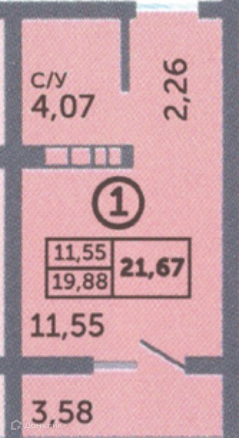 Общая площадь 21.7 м2