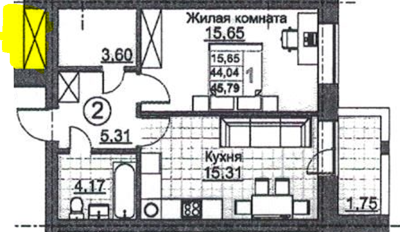 Общая площадь 45 м2