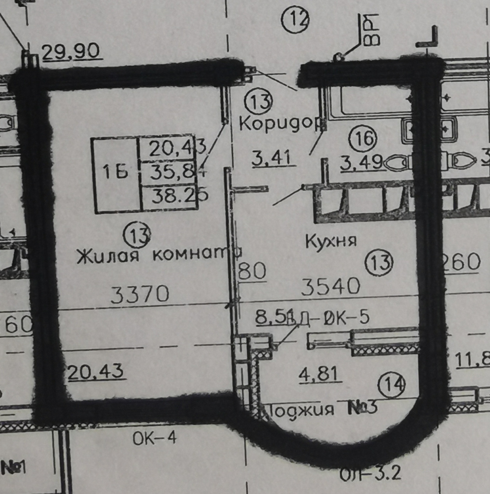 Общая площадь 38.3 м2