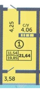 Общая площадь 21.6 м2