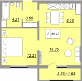 Общая площадь 46 м2