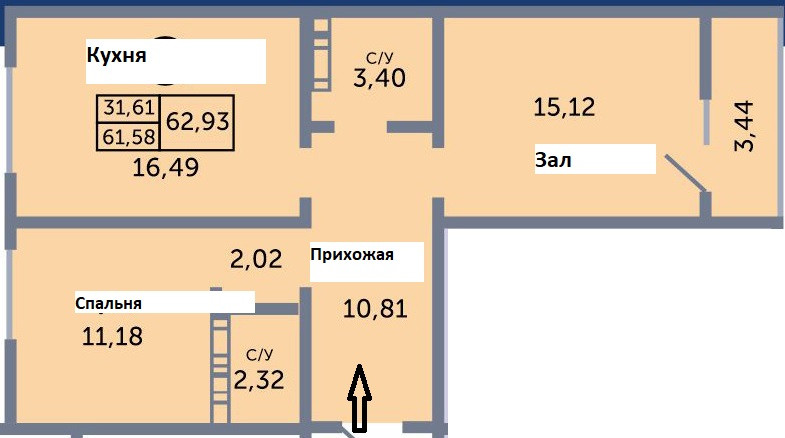 Общая площадь 61 м2