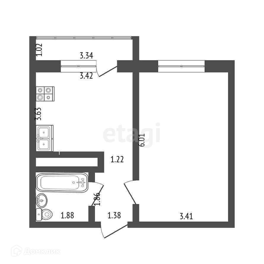 Балкон, лоджия 1 балкон