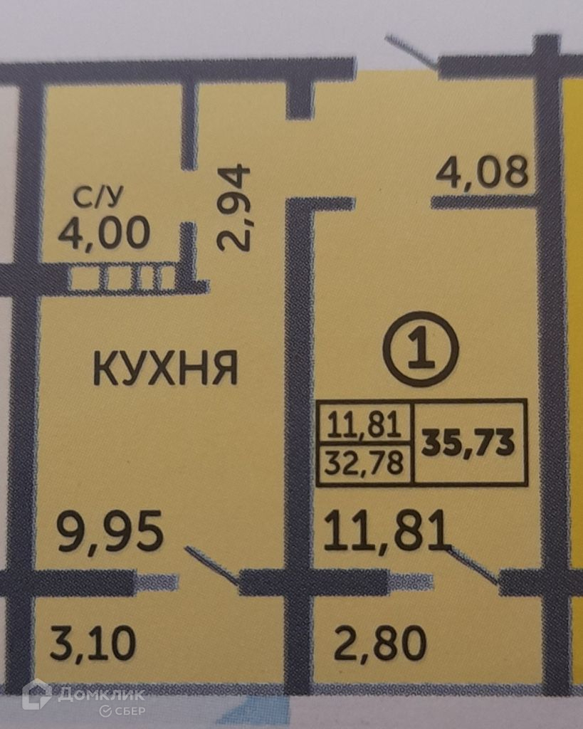 Общая площадь 35.73 м2