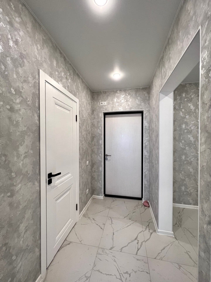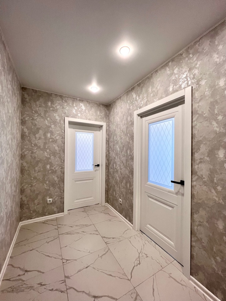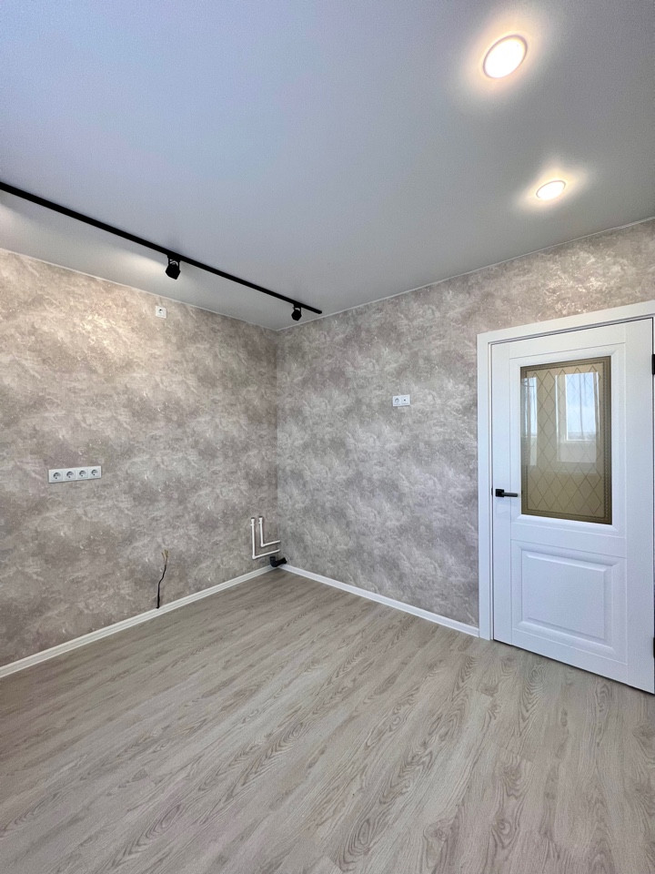 Выровнены все стены, натяжные потолки с точечной подсветкой, наливные полы, постелен красивый ламинат хорошего класса, качественные дорогостоящие обои.