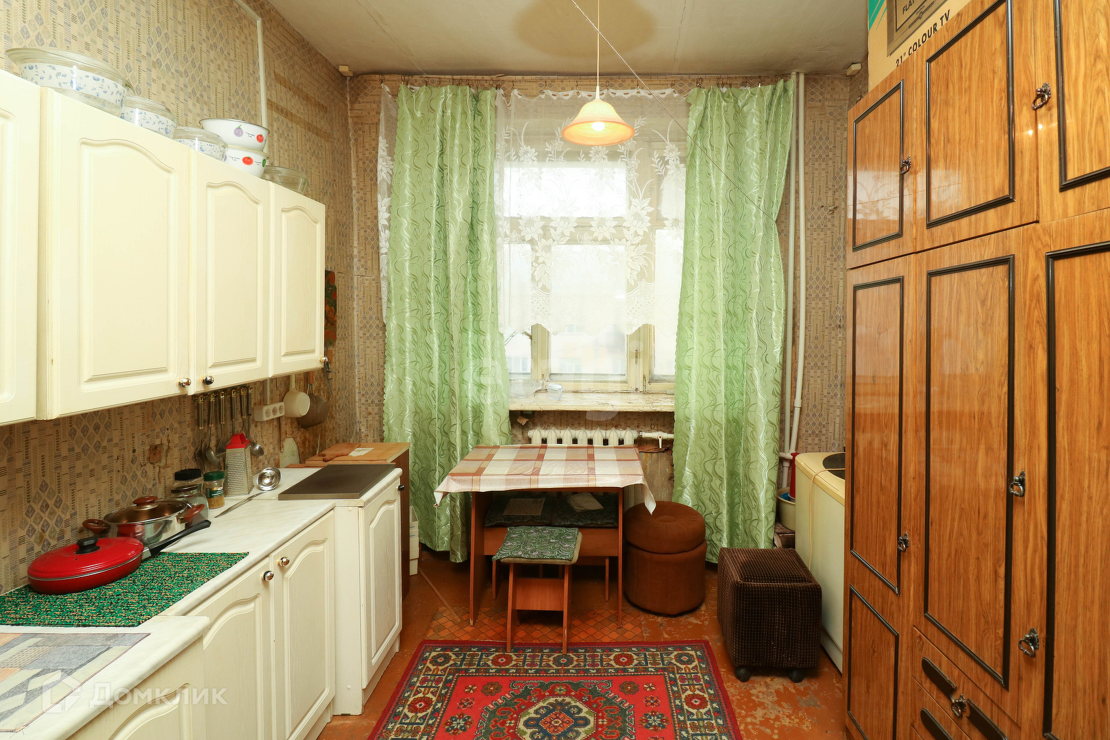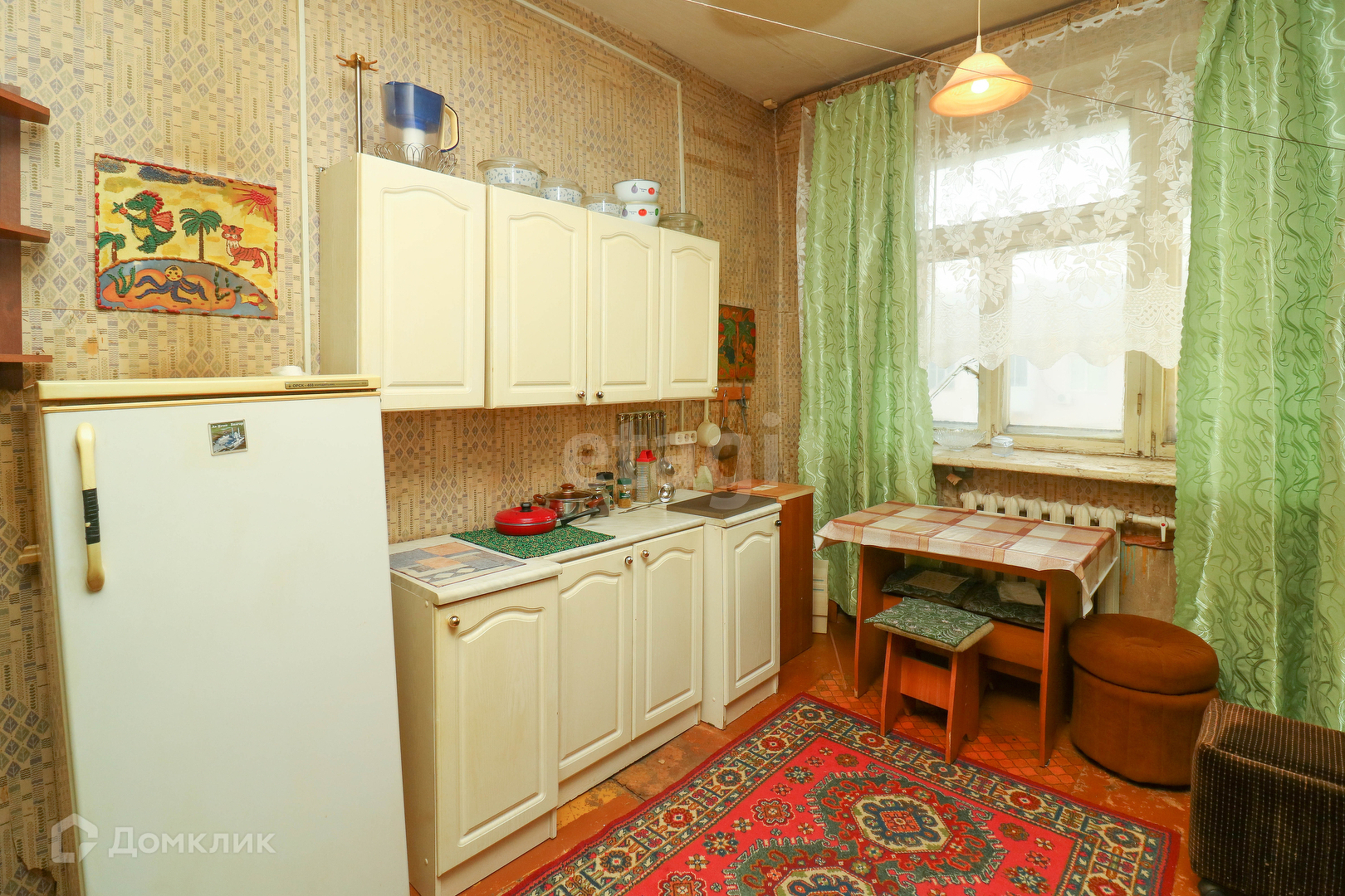 Квартира представляет собой две комнаты общей площадью 21 кв.м. Требуется косметический ремонт, возможно завести водопровод, туалет общий в коридоре, все что есть в квартире остается, обои и потолочные панели в подарок,вся мебель остается.