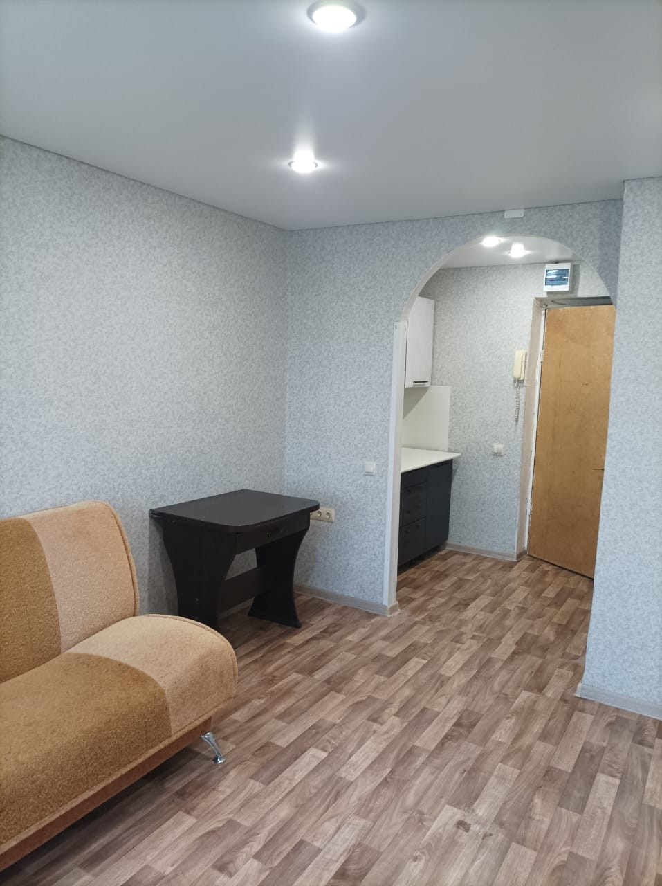Продается  квартира. В картире произведен косметический ремонт: сделан натяжной потолок, установлена небольшая кухня, заменена проводка, установлены счетчики на г/х воду и электричество, постелен линолеум, поклеены обои.