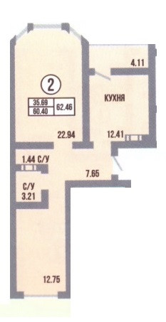 Жилая площадь 35.69 м2