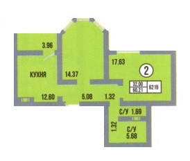 Общая площадь 62.5 м2