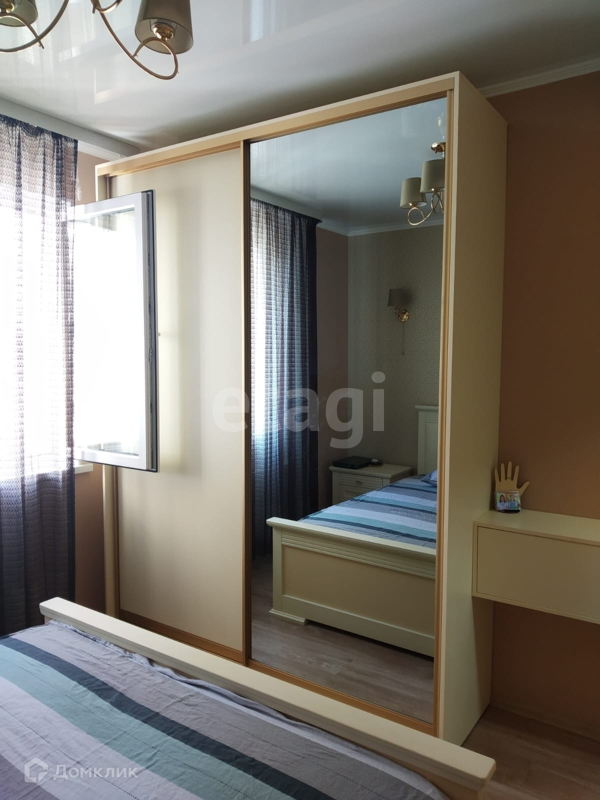 -вместительный шкаф-купе с зеркалом и макияжной тумбой в спальне