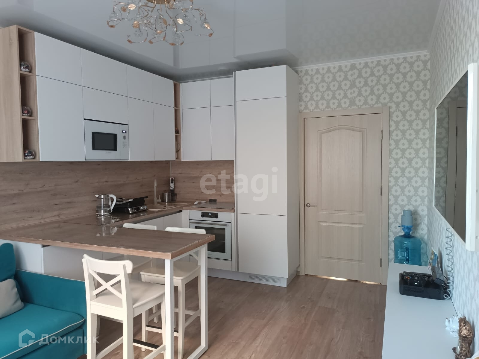 В квартире сделан дорогой современный ремонт. На полу ламинат 33 класса прочности, дорогие обои натяжные потолки, керамогранит на кухне, в коридоре и сан узле., утепленная лоджия.