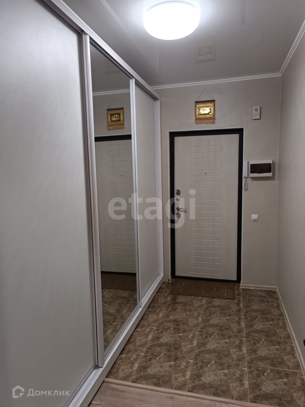 -встроенный гардеробный шкаф купе с большим зеркалом в коридоре