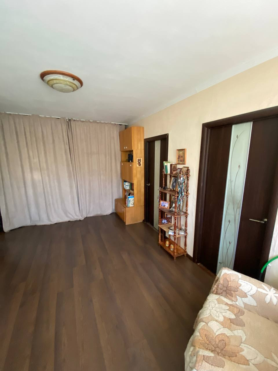 Установлены пластиковые окна и трубы, натяжные потолки в комнатах, на полу в комнатах – ламинат, на кухне и в коридоре – линолеум.