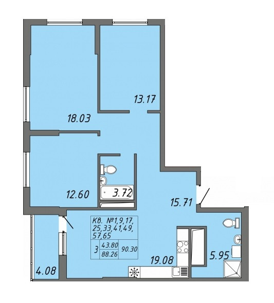 Общая площадь 92.3 м2