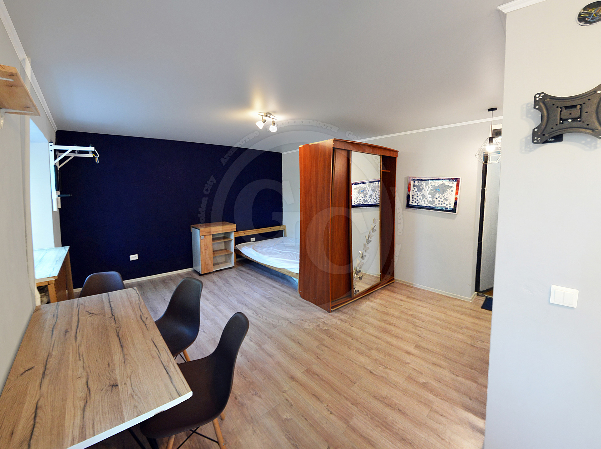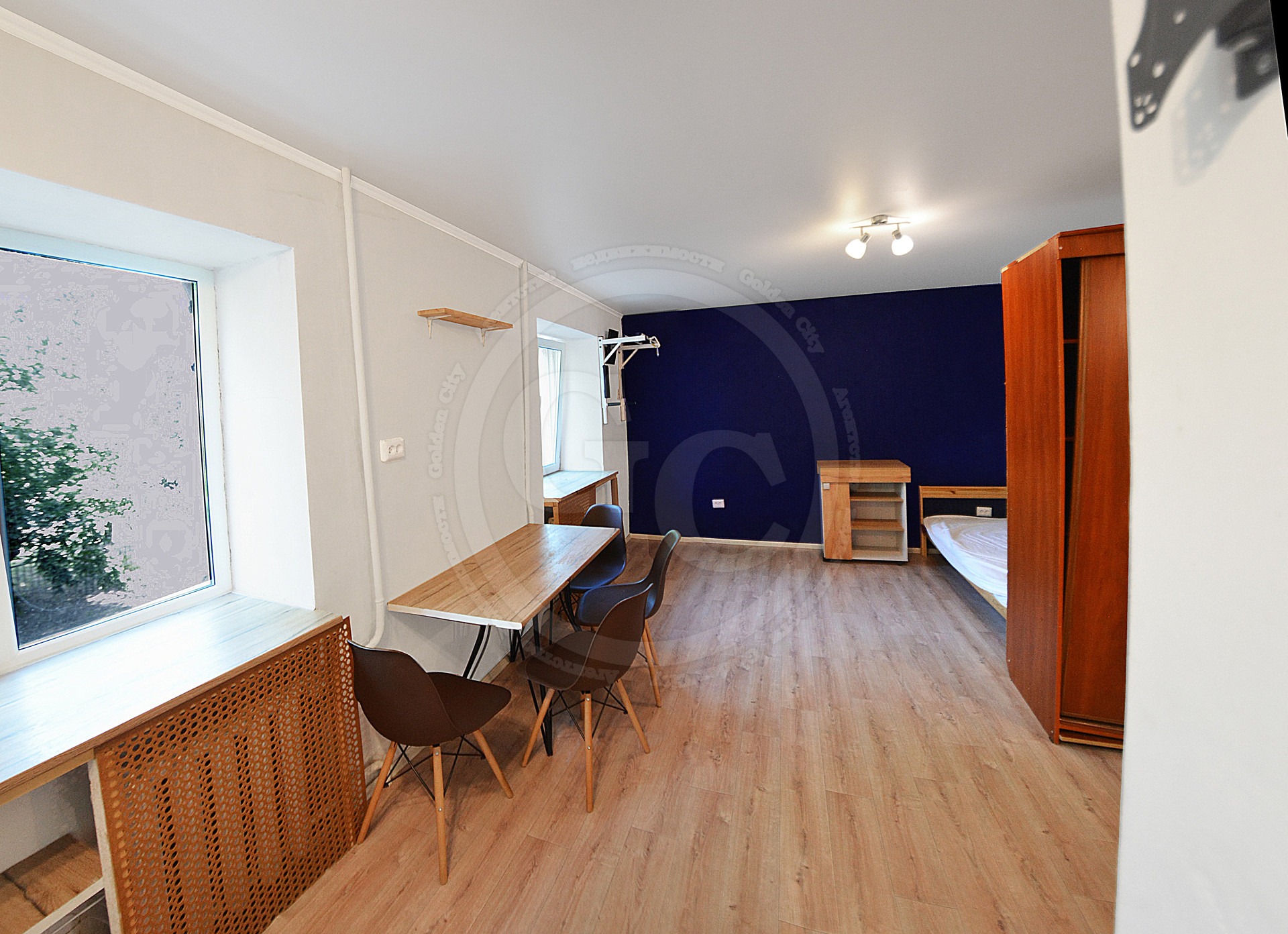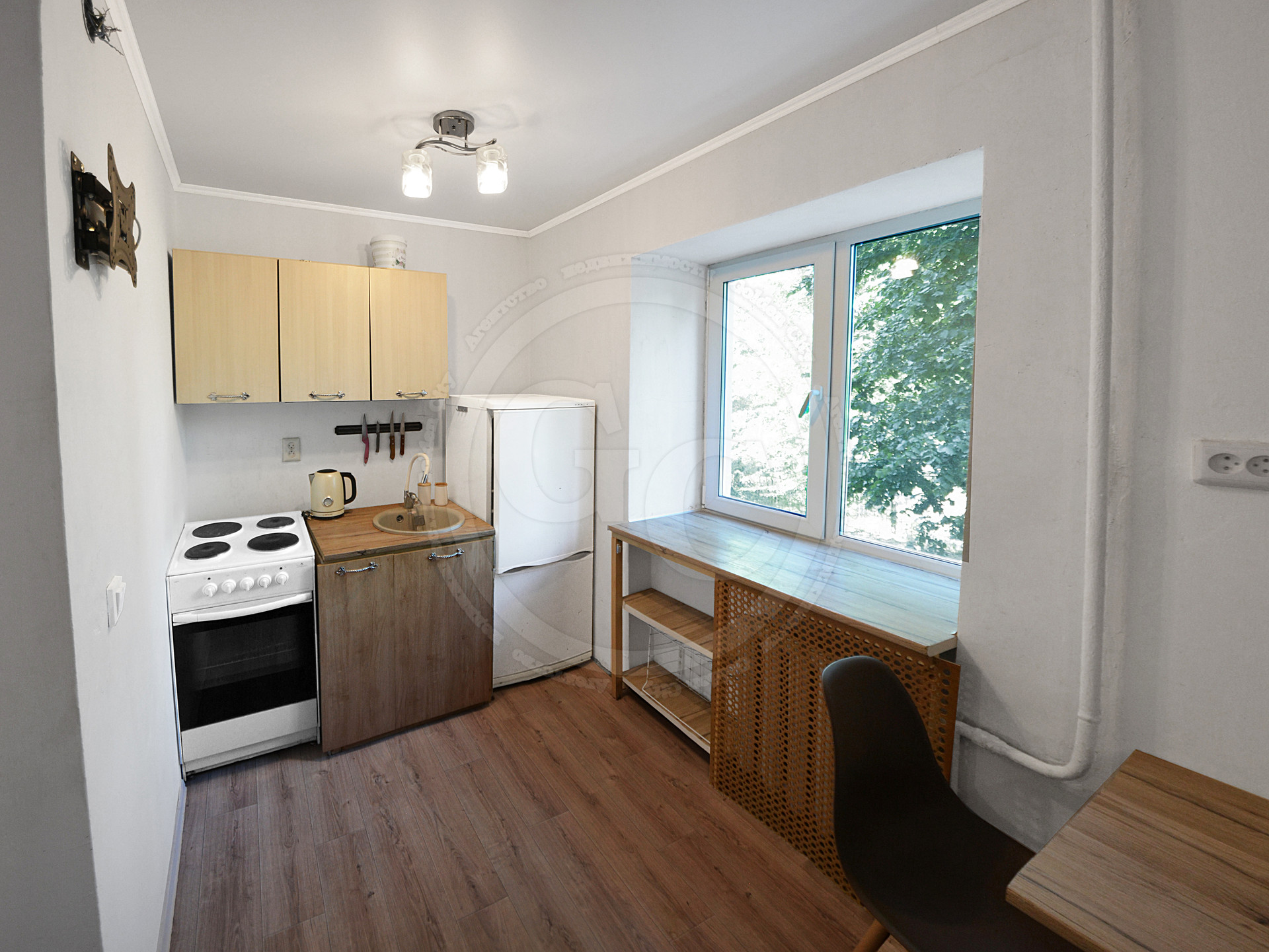 В квартире светло и чисто. Разумно организованное жилое пространство с зонированной нишей под спальное место и рабочей зоной