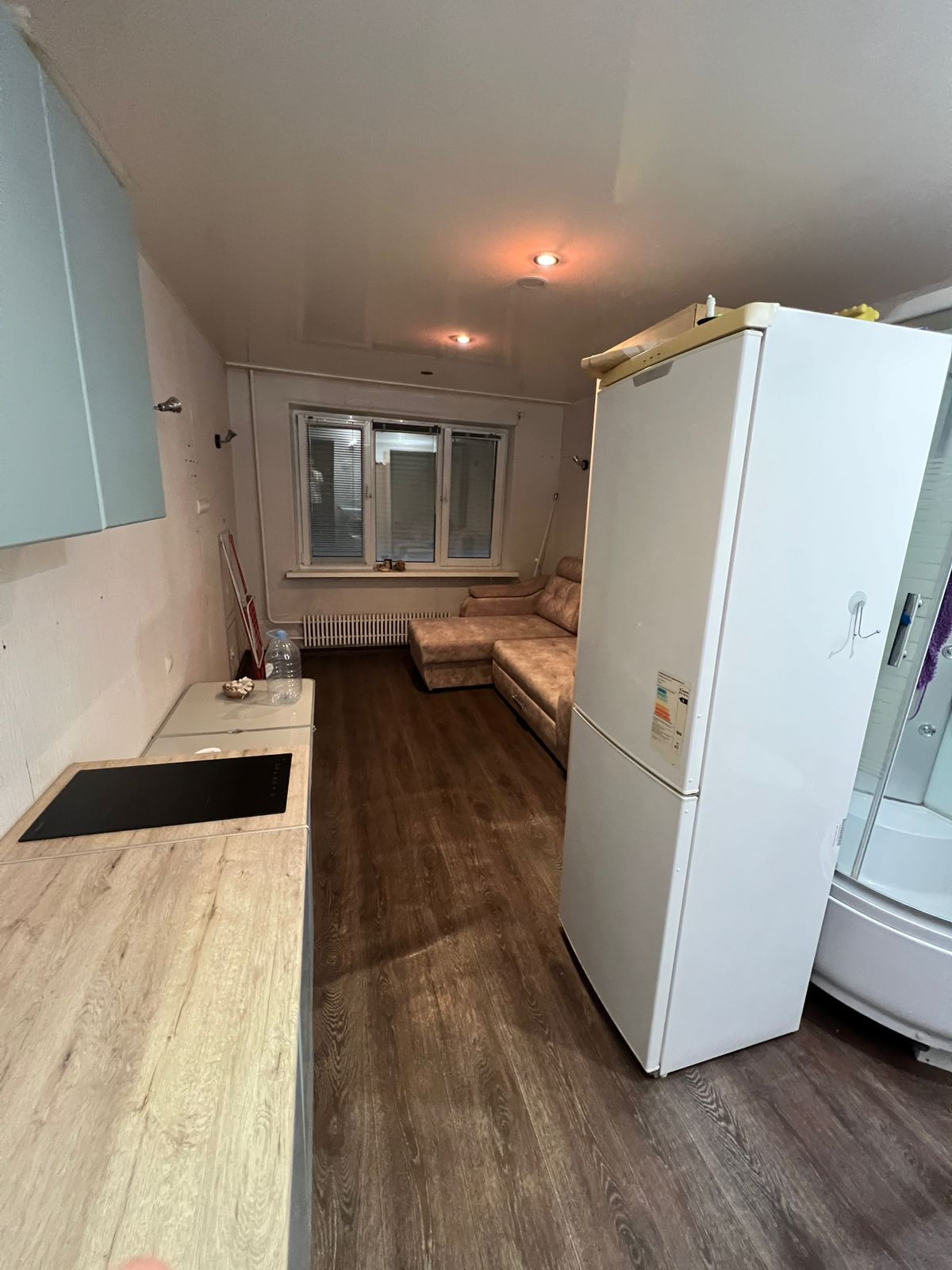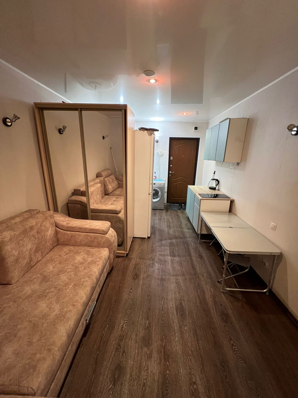 Продается 1-комнатная студия. 1 этаж 5-этажного дома. Площадь 17,4м. Хорошее состояние. Душевая кабина, туалет, все свое. Кухонный гарнитур. Вся мебель и техника остается.