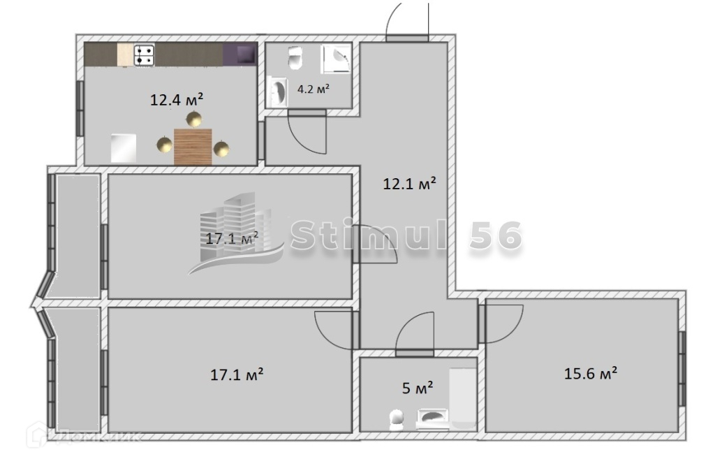 Площадь кухни 12.4 м2