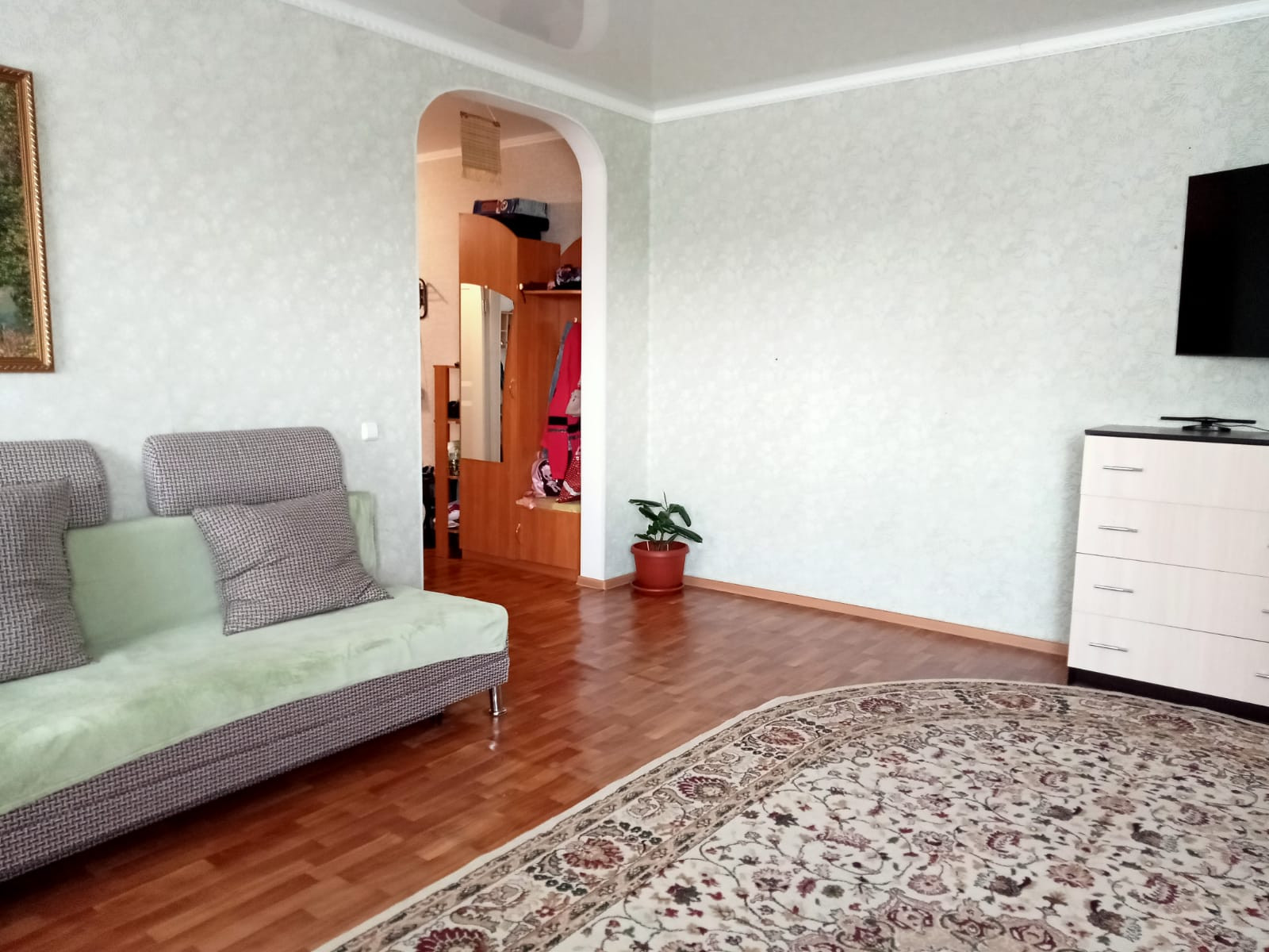 В квартире большая кухня, просторный зал, спальня, раздельный санузел. Преимуществом квартиры является огромная прихожая, третий этаж расположения.