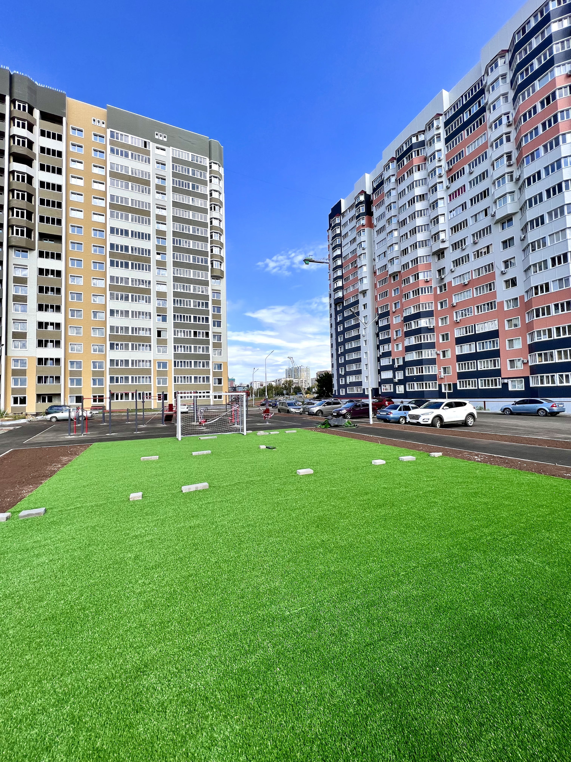 Оборудованы детские игровые площадки, большая парковка для автомобилей с 2-х сторон.