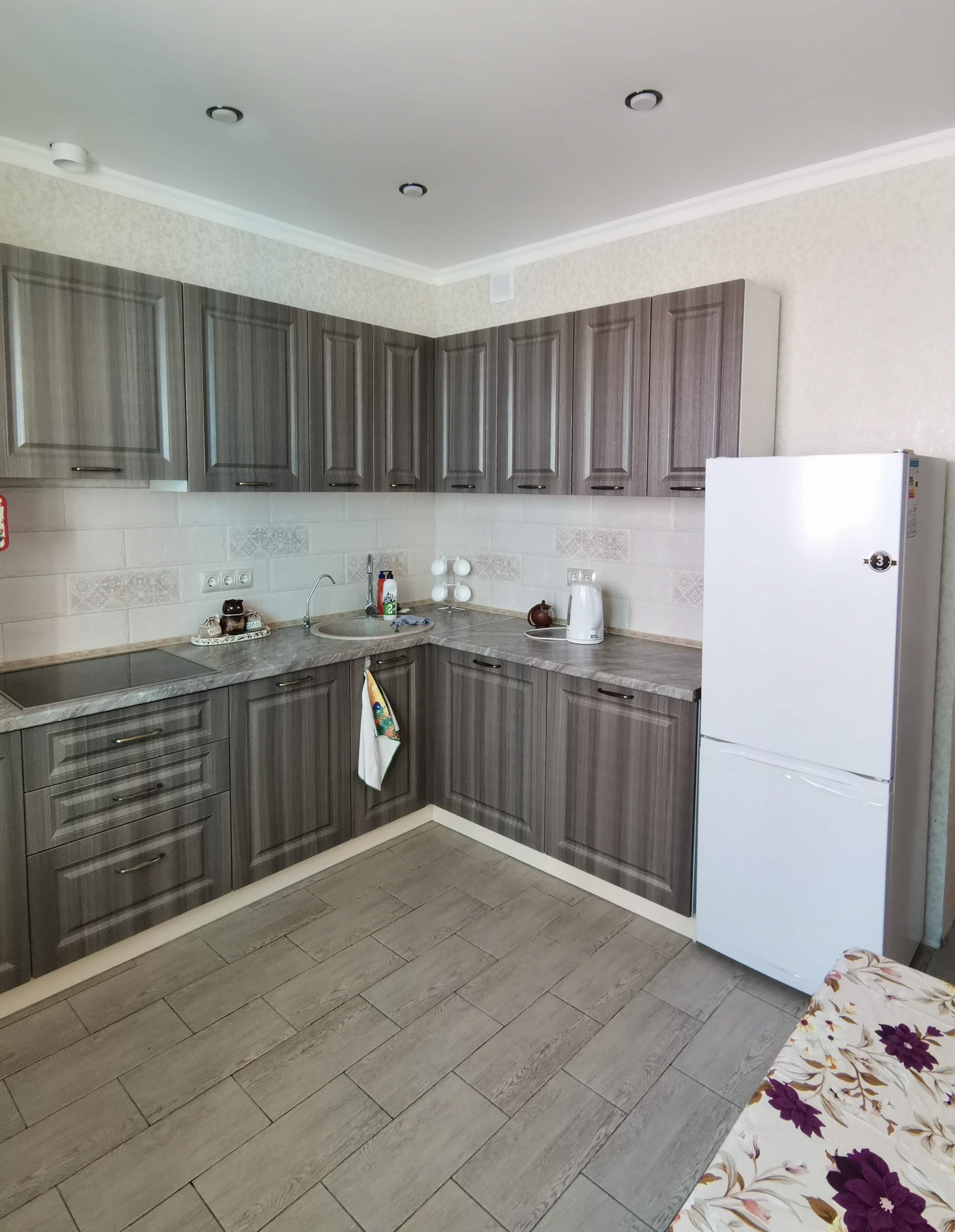 В квартире сделан косметический ремонт. На кухне и ванной комнате проложен теплый пол. Кухонный гарнитур со встроенной плитой,холодильник, стиральная машина и частично мебель остаются  в квартире.