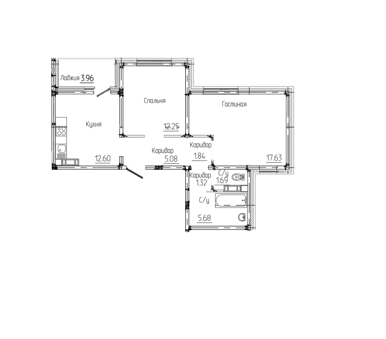 Общая площадь 60.07 м2