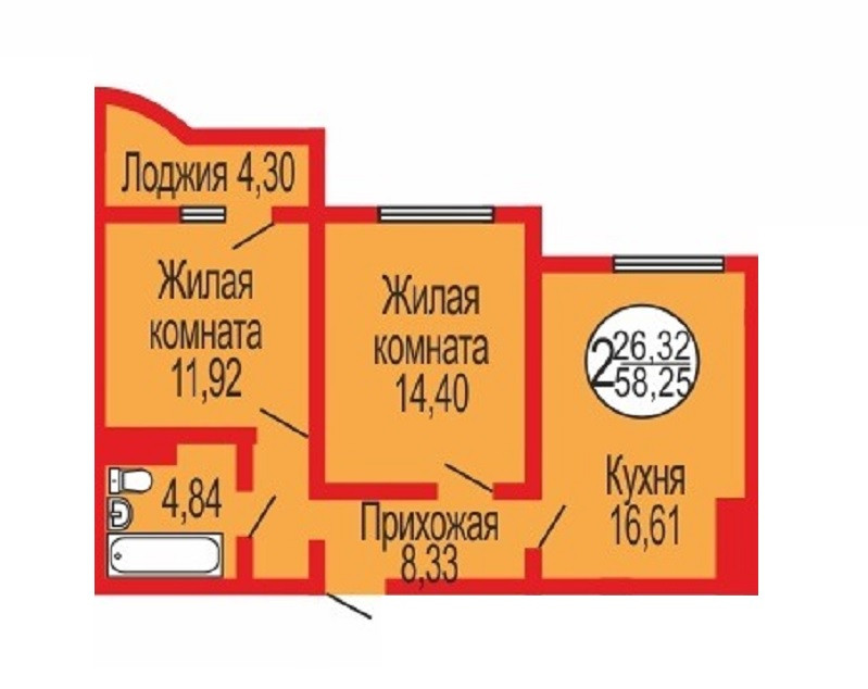 Общая площадь 60 м2