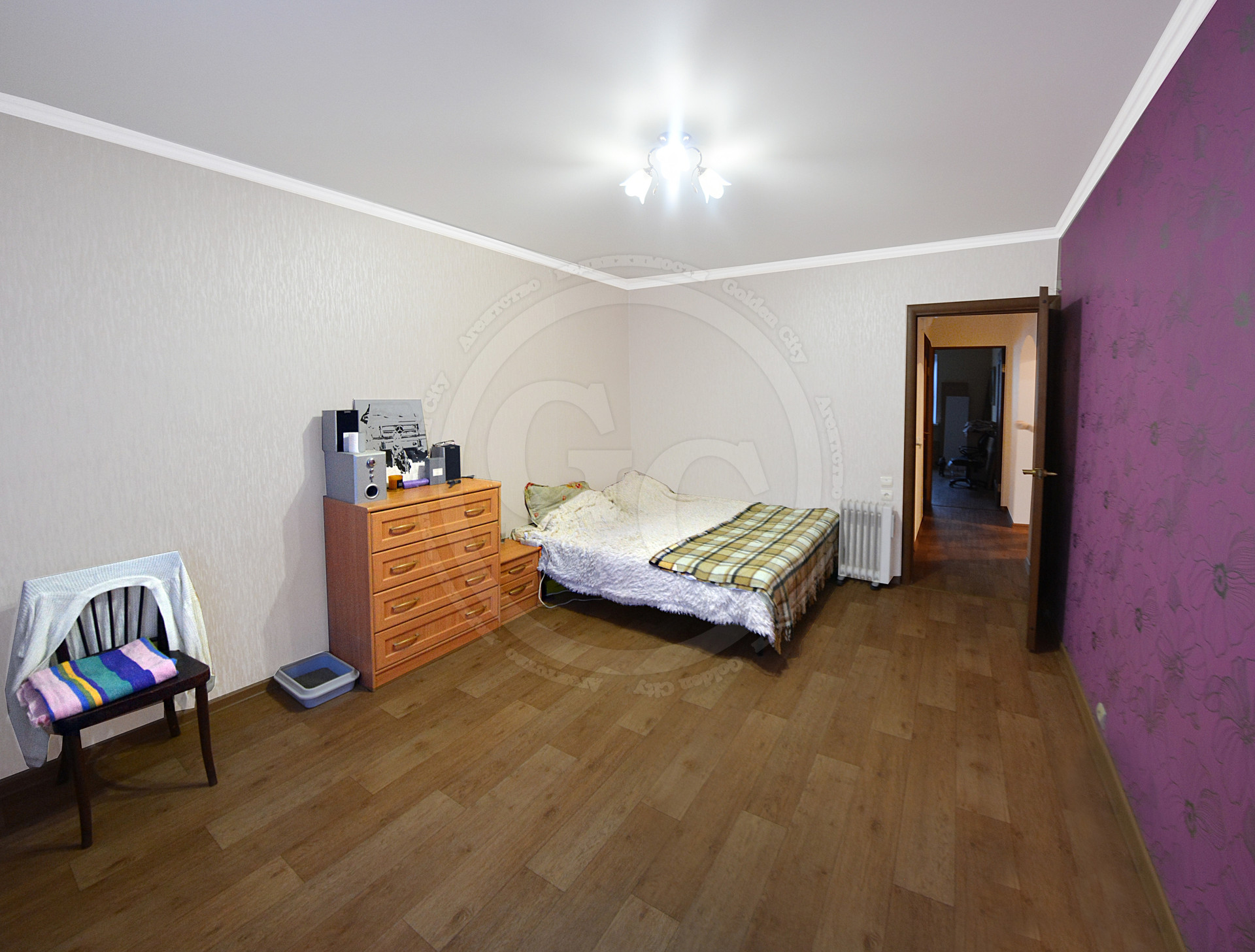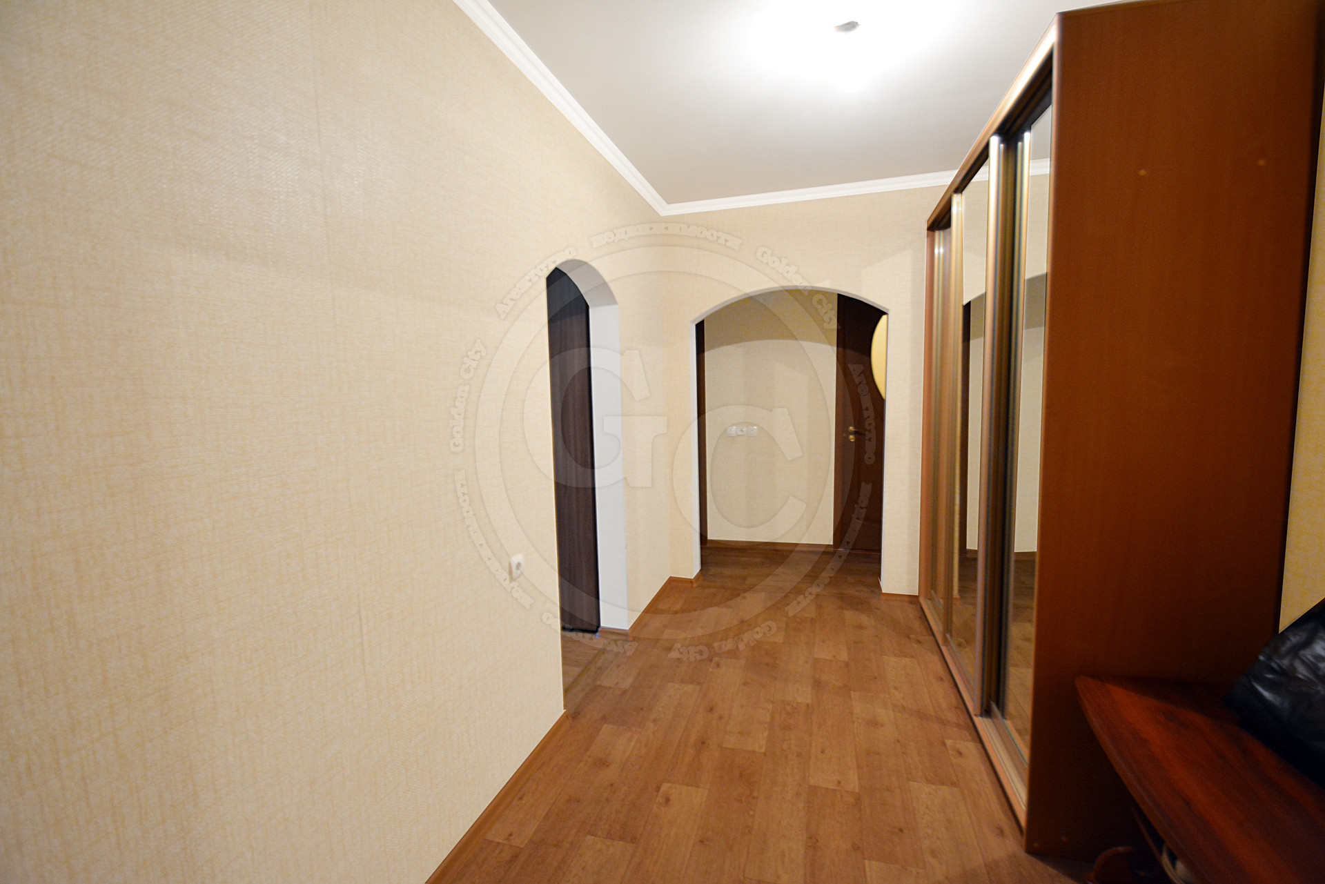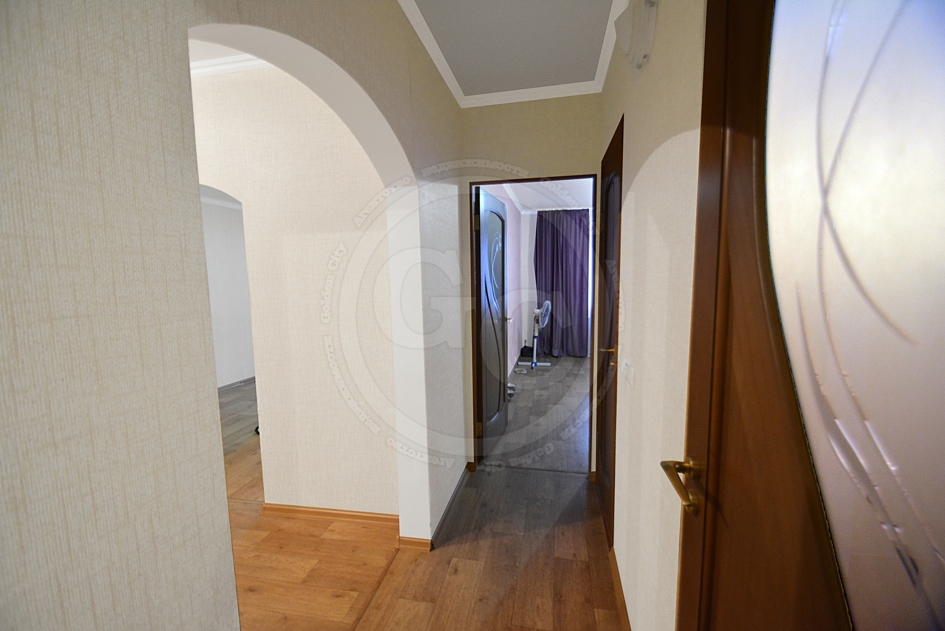 Квартира просторная, площадью 85кв.м., с оптимально удобной планировкой, где все комнаты изолированы. Потолок на кухне и в спальной комнате – натяжной, во 2-ой спальной комнате, и коридоре выровнен и окрашен, в гостиной – двухуровненвый. На пол по всей площади квартиры настелен линолеум, стены оклеены обоями. Ванная комната и туалет - раздельные и отделанные кафелем. Окна ПВХ, выходят на обе стороны дома.
