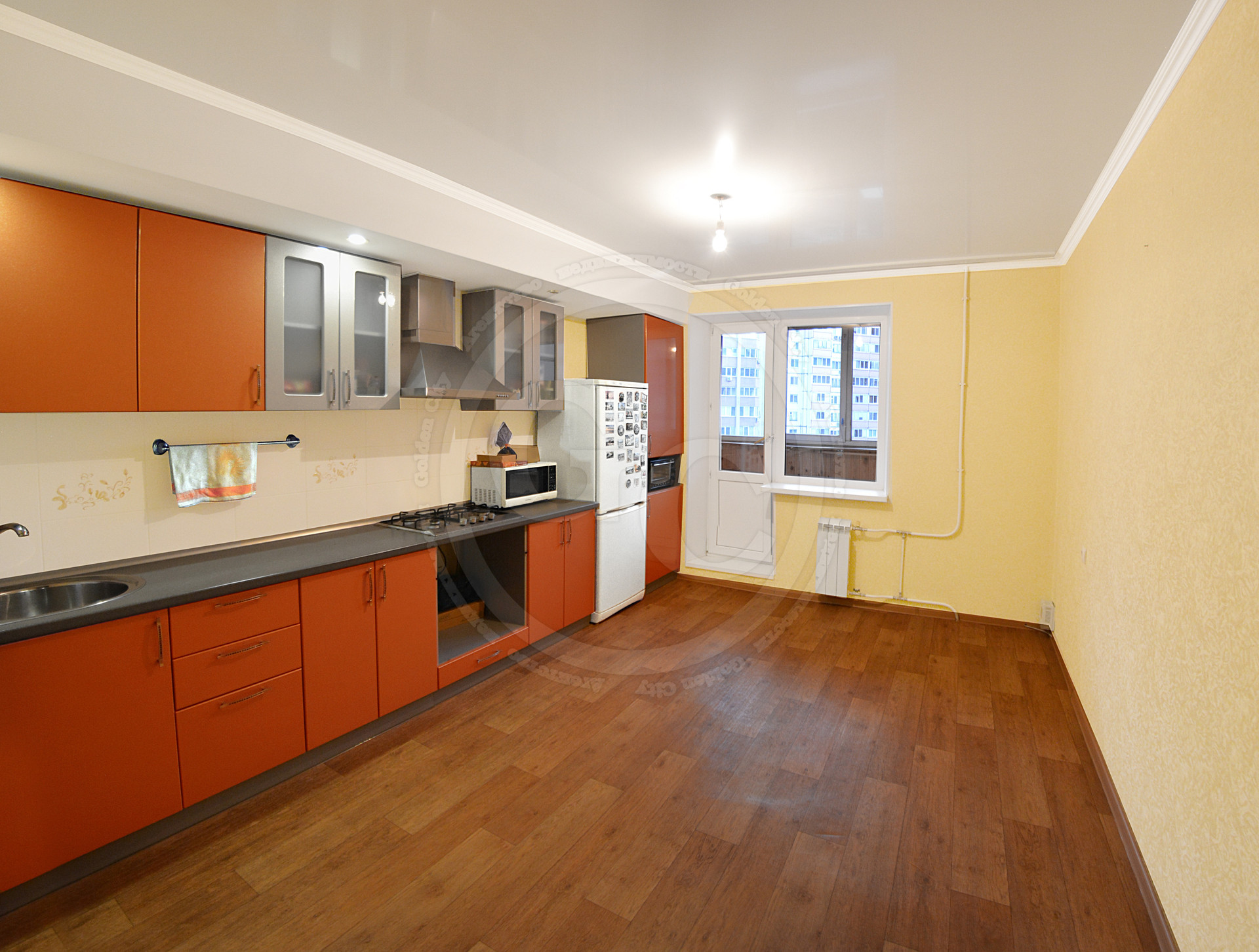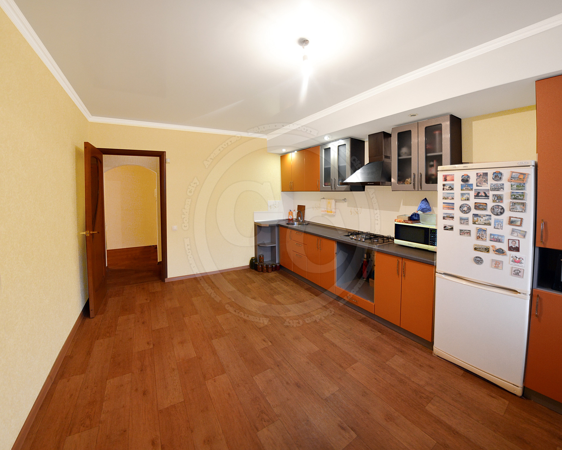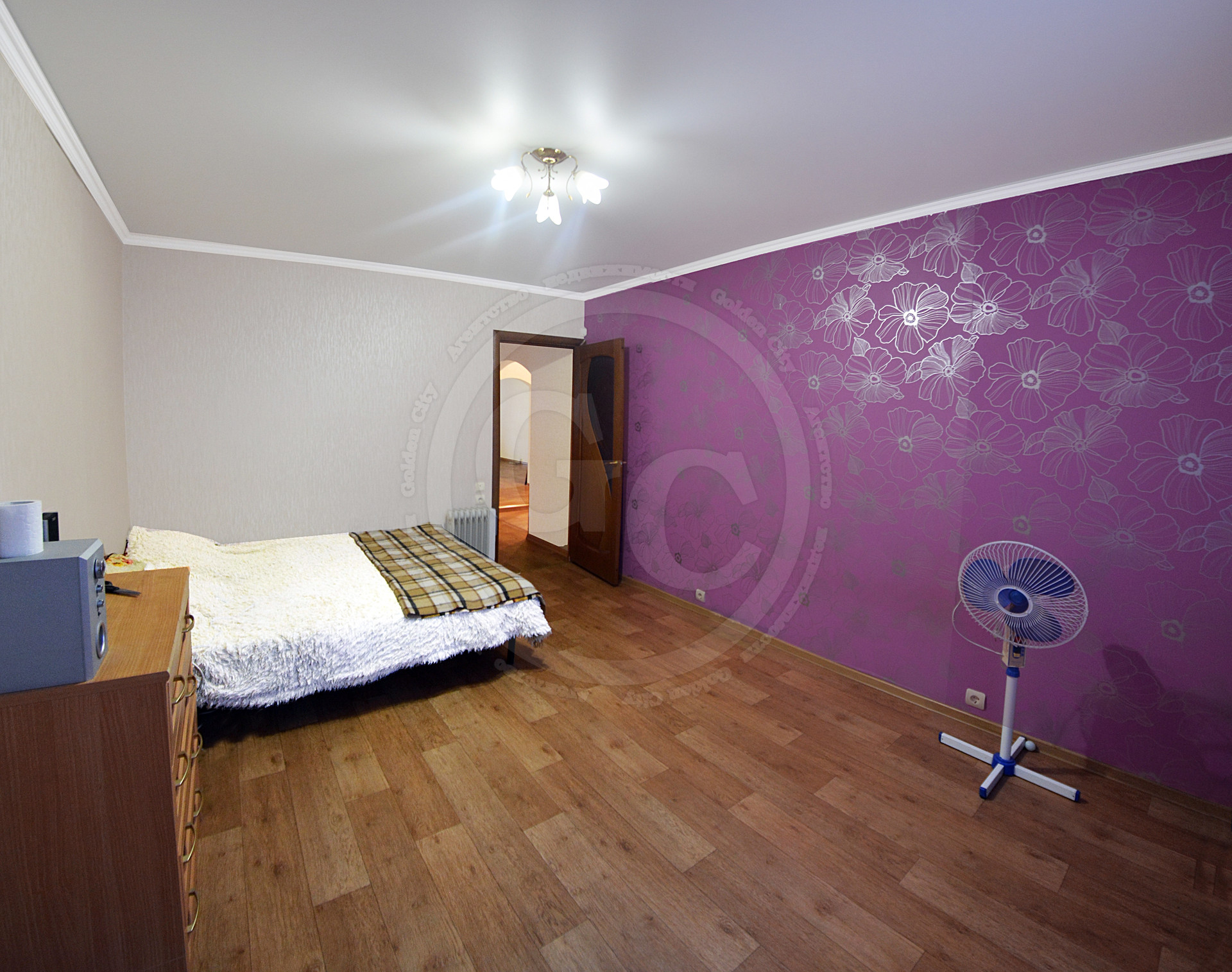 Квартира просторная, площадью 85кв.м., с оптимально удобной планировкой, где все комнаты изолированы. Потолок на кухне и в спальной комнате – натяжной, во 2-ой спальной комнате, и коридоре выровнен и окрашен, в гостиной – двухуровненвый. На пол по всей площади квартиры настелен линолеум, стены оклеены обоями. Ванная комната и туалет - раздельные и отделанные кафелем. Окна ПВХ, выходят на обе стороны дома.