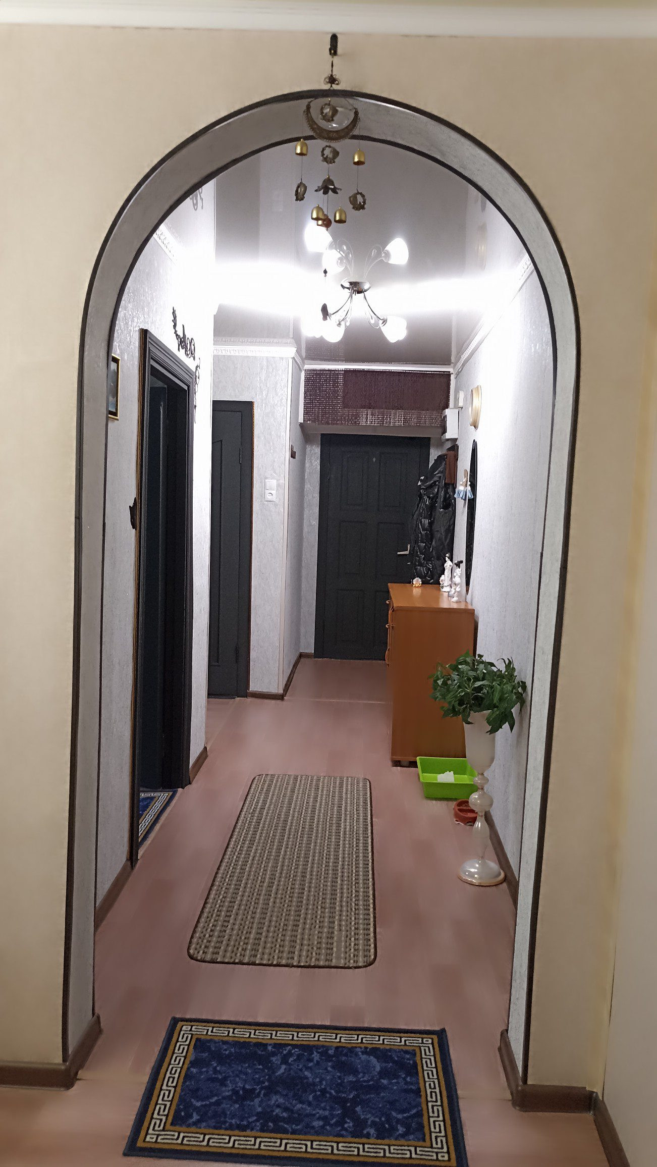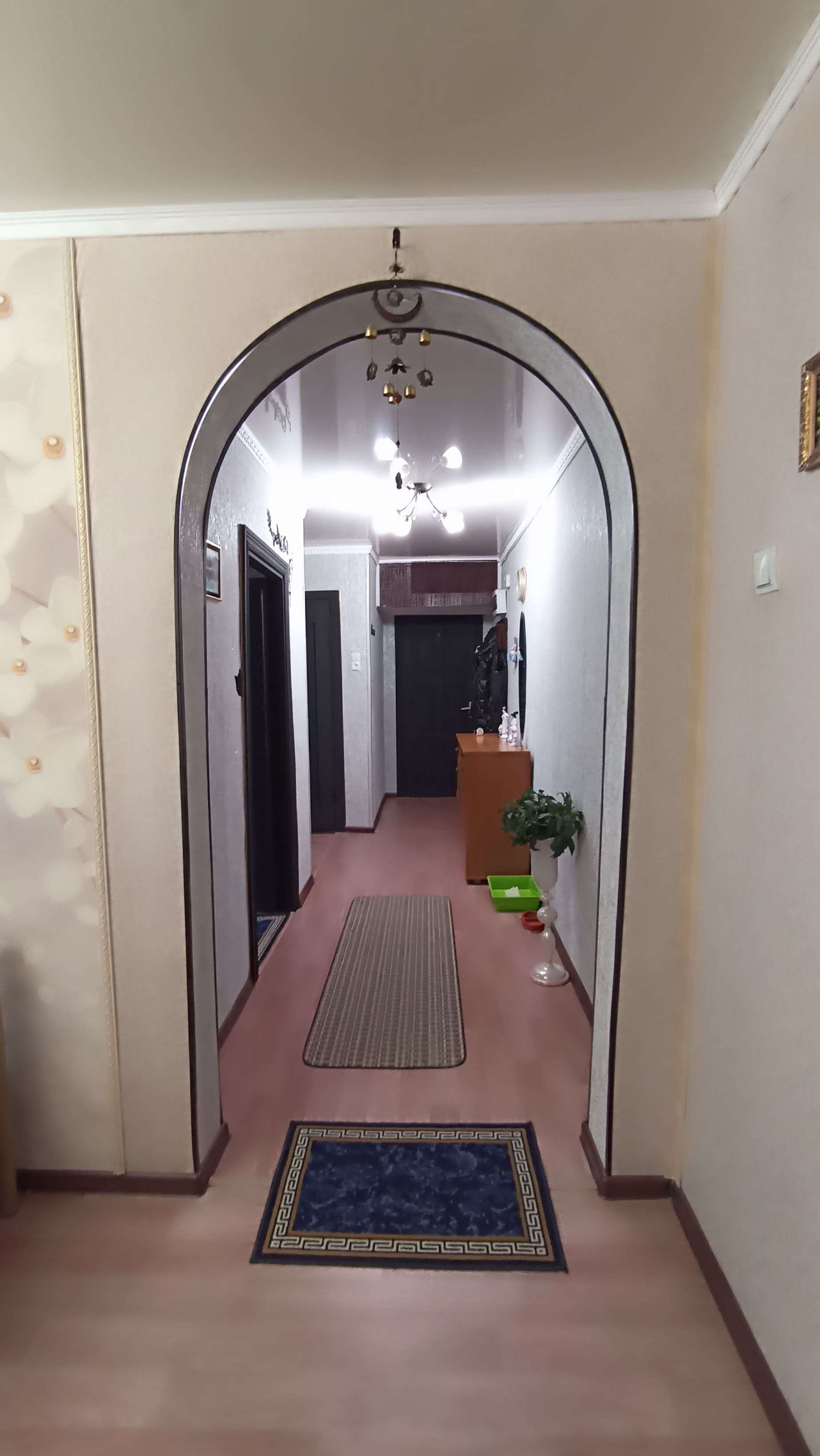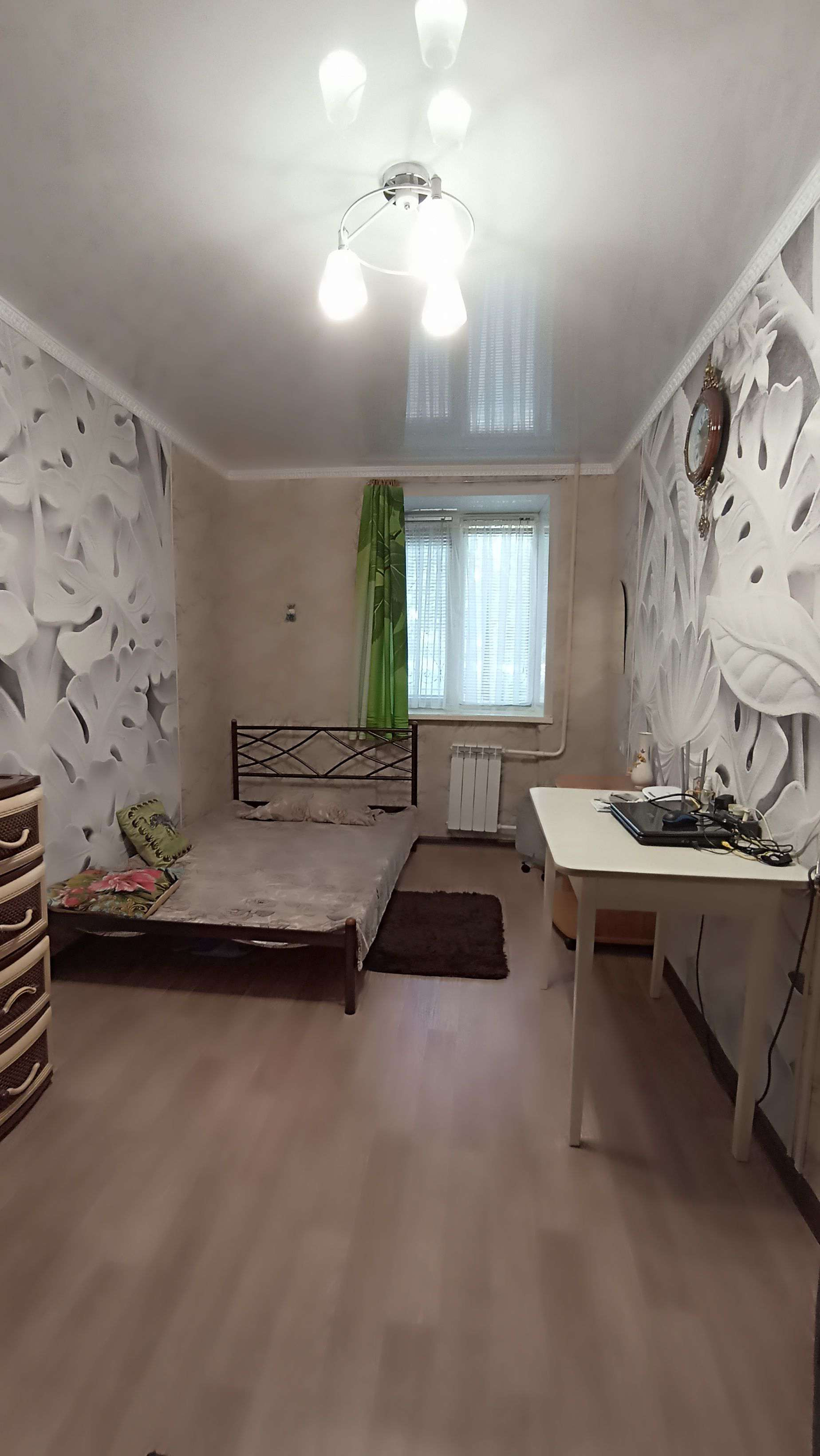 Сделаны красивые натяжные потолки. Красивые обои в сочетании с эффектом 3D, новый линолеум, установлена новая газовая плита Gefest 60*60 см (газконтроль есть, новые шланг и кран). Поставлен новый радиатор отопления в спальне, остальные радиаторы в отличном состоянии.