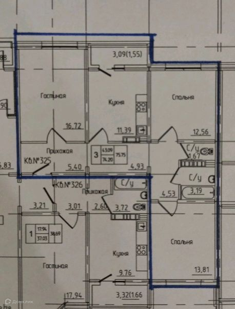 Общая площадь 75 м2