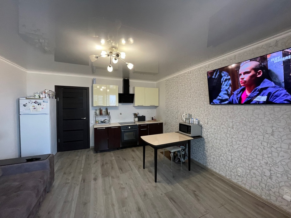 Квартира с хорошим ремонтом: плитка в ванной комнате, светлые обои, ламинат на полу, лоджия сделана,везде натяжной потолок, входная дверь заменена на металлическую.