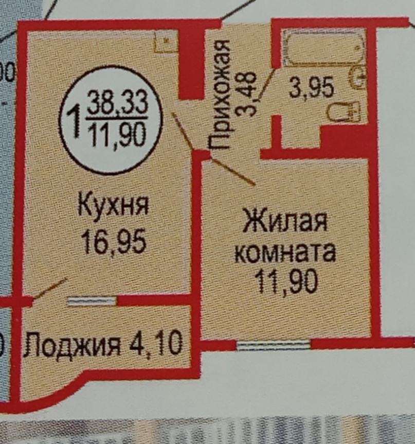 Общая площадь 38,5 кв.м.