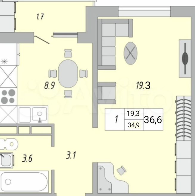 Общая площадь 35м.кв.